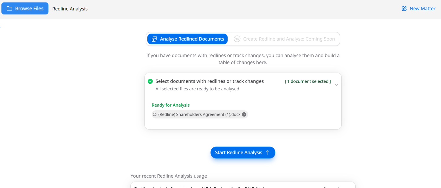 Only marked-up PDFs (.pdf) and Word Documents (.docx format) are acceptable for Redline Analysis.